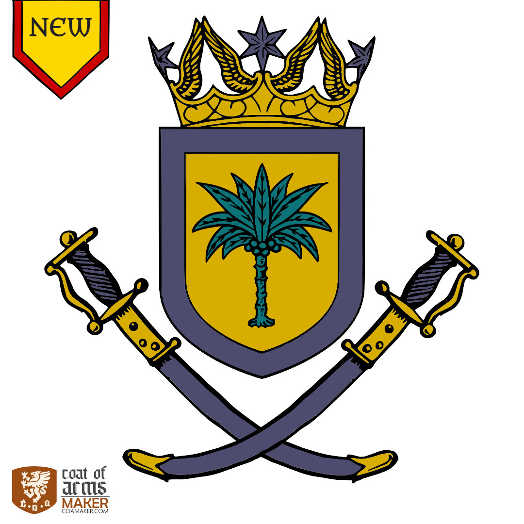 Our new sabers add a South Asian flair to your heraldry. They enrich our large weapon collection in our coat of arms maker. #saber #palm #desertkingdom #southasia #starcrown #heraldry #fantasyart #medievalart #dnd #rpg