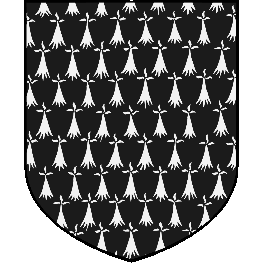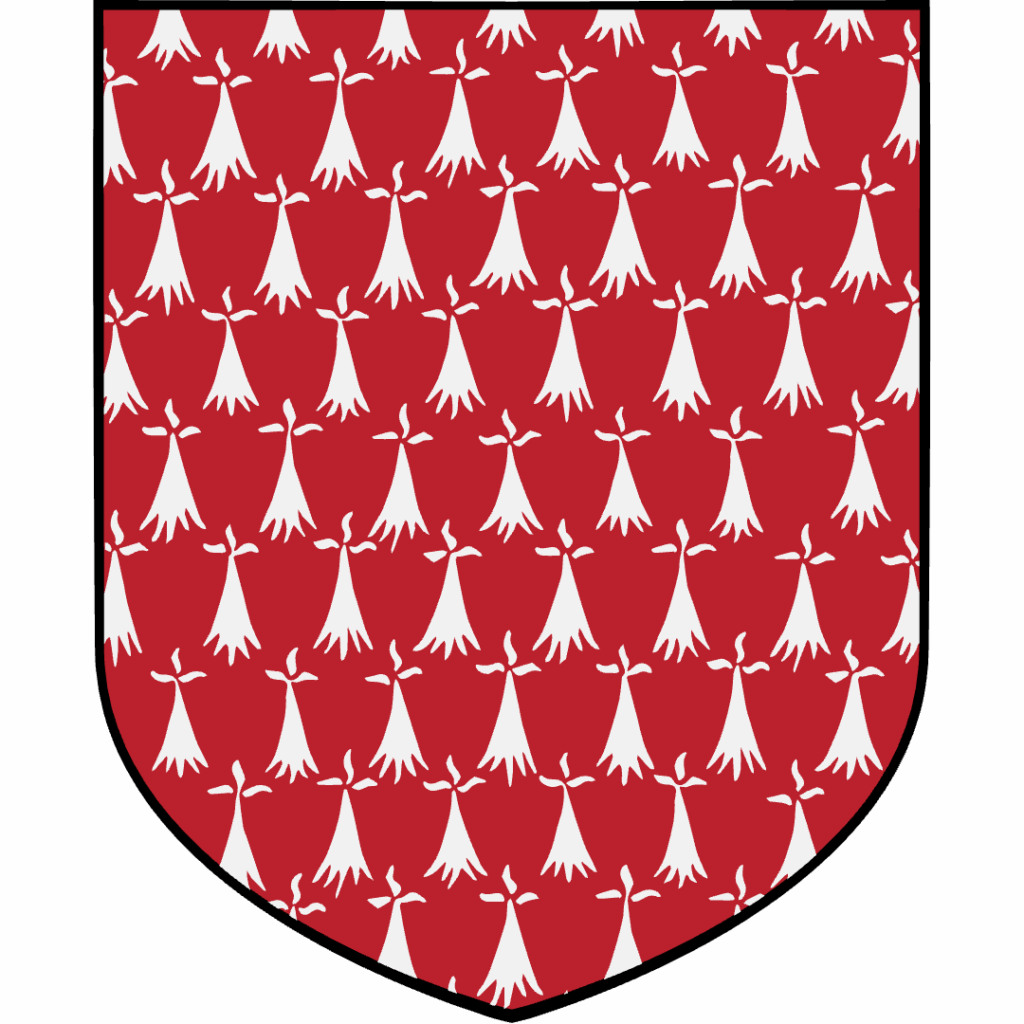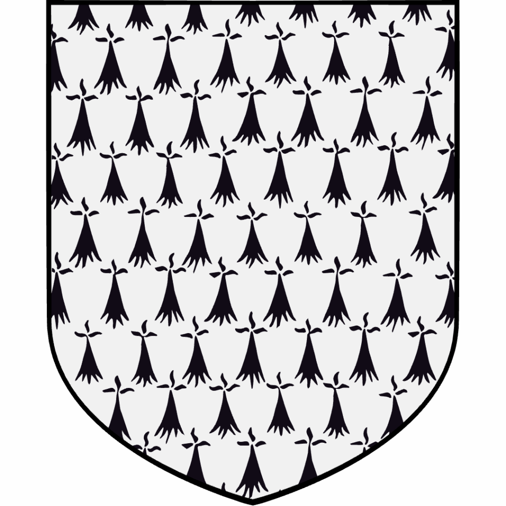 Ermine represents the white winter coat of the stoat, with its distinctive black tail tip. In heraldry, Ermine appears as a white Field dotted with black shapes representing these tails. Because real Ermine Fur lined coronation robes and royal mantles, heraldic Ermine became strongly associated with sovereignty and high nobility. It’s particularly connected to Breton heraldry and the Duchy of Brittany.