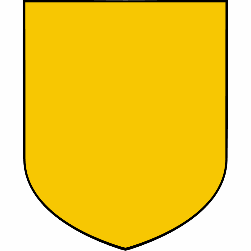 Or (gold/yellow) is named from the Latin aurum, meaning gold. In heraldic art, you can depict it as either metallic gold Or bright yellow—there’s no separate “yellow” in heraldry. Whether you render it as shimmering gold leaf Or flat yellow paint, it’s still blazoned as “Or”.