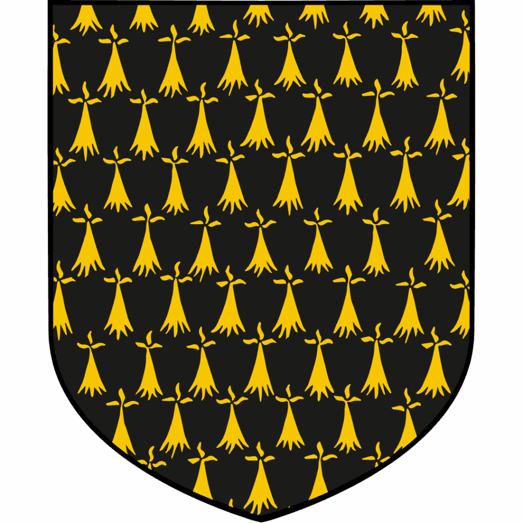 Like Ermine, Vair has variations. When you use colors other than the standard blue and white, it’s called vairé Or vairy, blazoned as “vairy [first Tincture] and [second Tincture]”. One must be a Metal and the other a Color to maintain contrast.